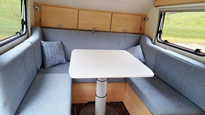 Als mobiler Sitzungsraum habe ich einen kleinen Wohnwagen.